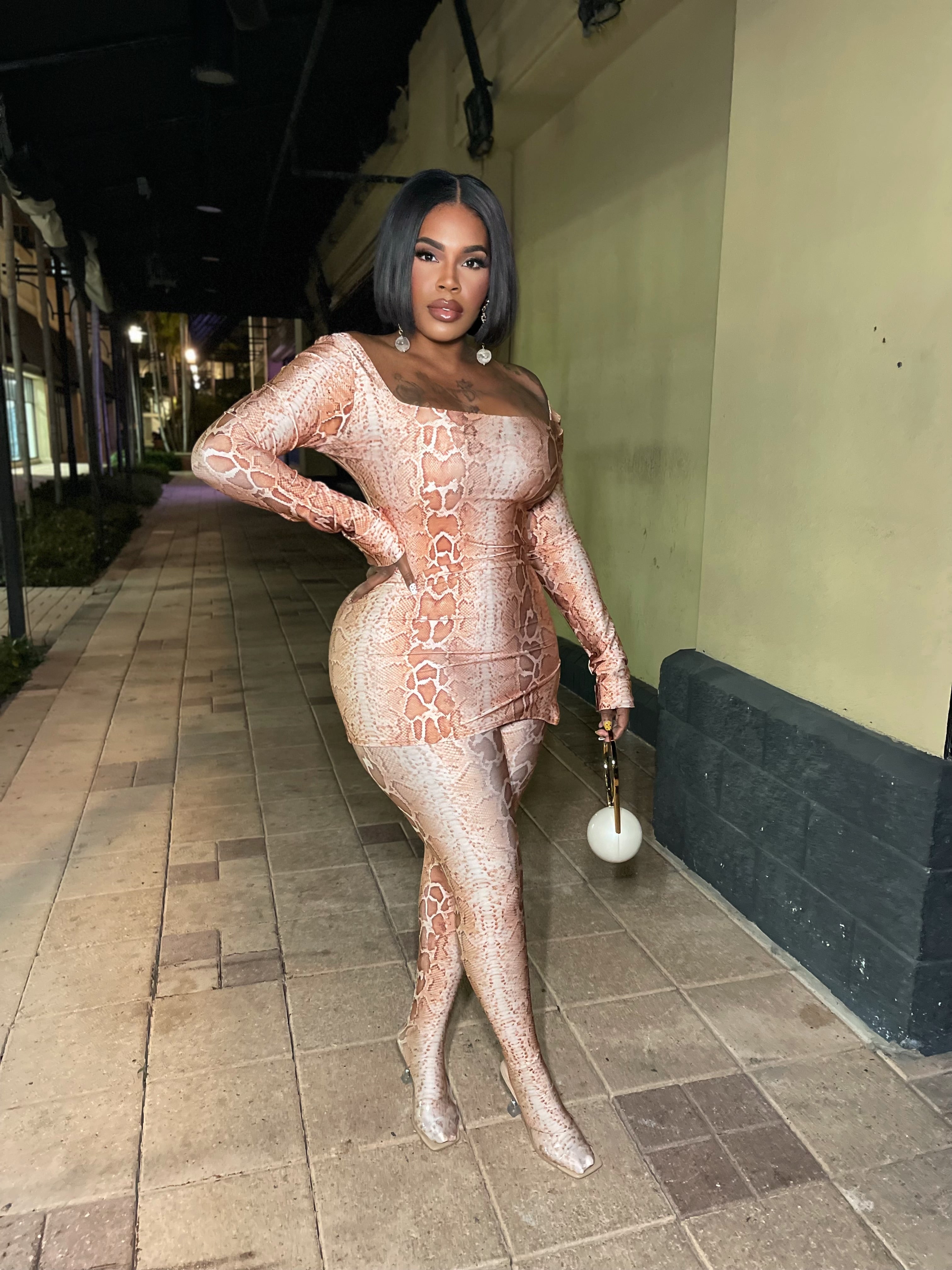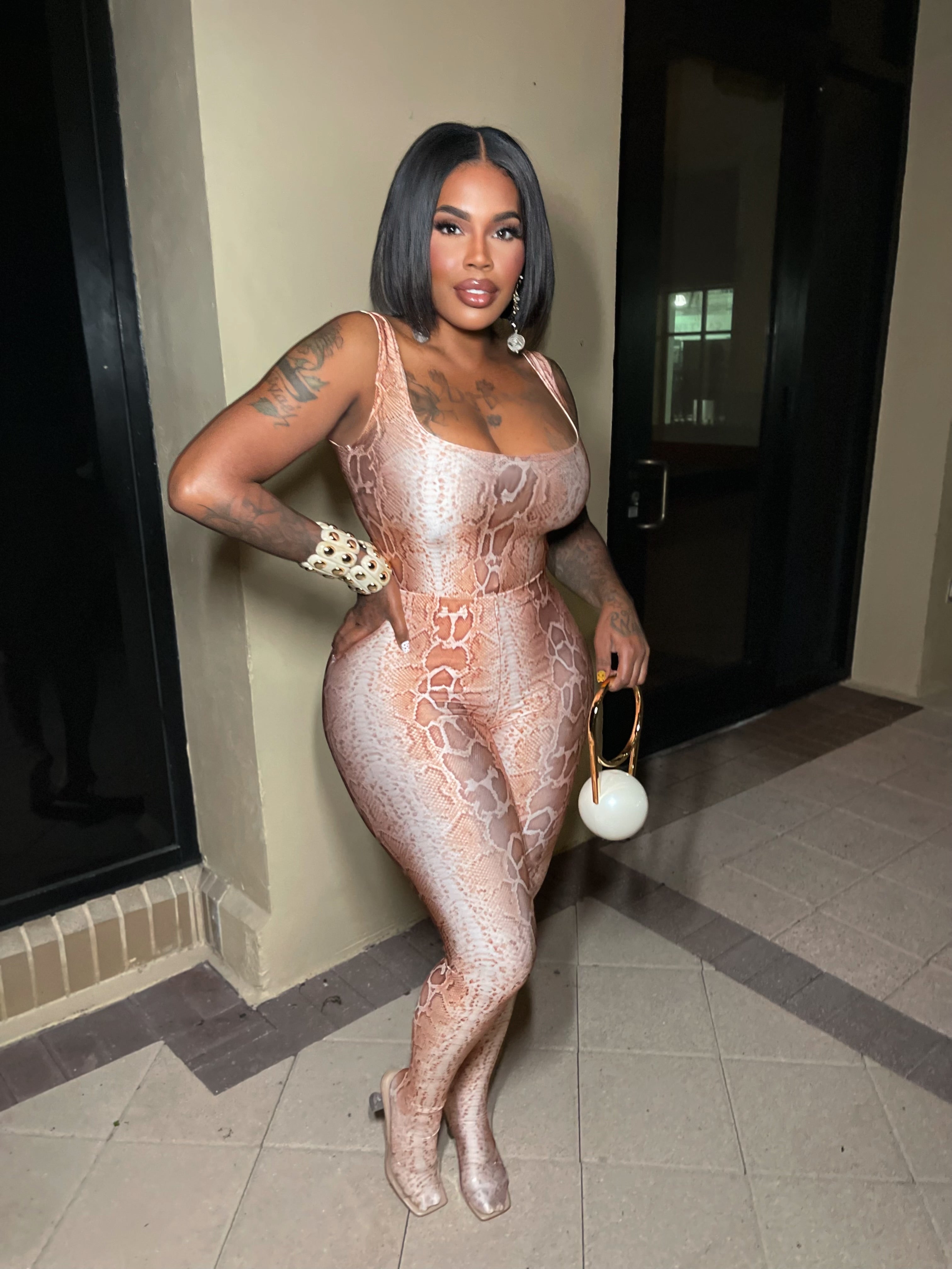 Bodycon Fox fur jumpsuit
